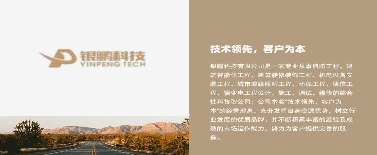 銀鵬科技有限公司是一家專業(yè)從事消防工程、建筑智能化工程、建筑裝修裝飾工程、機(jī)電設(shè)備安裝工程、城市道路照明工程、環(huán)保工程、通信工程、輸變電工程設(shè)計(jì)、施工、調(diào)試、維修的綜合性科技型公司。公司具有建設(shè)主管部門頒發(fā)的《建筑業(yè)企業(yè)資質(zhì)證書》:建筑裝修裝飾工程專業(yè)承包壹級(jí)、消防設(shè)施工程專業(yè)承包壹級(jí)、電子與智能化工程專業(yè)承包壹級(jí)、防水防腐保溫工程專業(yè)承包壹級(jí)、建筑機(jī)電安裝工程專業(yè)承包壹級(jí)資質(zhì)、通信工程總承包貳級(jí)、市政公用工程施工總承包貳級(jí)、建筑工程施工總承包貳級(jí)、古建筑工程專業(yè)承包貳級(jí)、機(jī)電工程施工總承包貳級(jí)、輸變電工程貳級(jí)、特種工程(特種防雷)專業(yè)承包不分等級(jí)、智能...